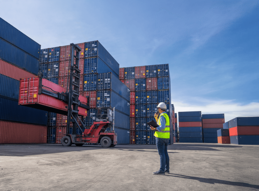 Área planejada para receber contêineres entre manobras logísticas, com organização, segurança e controle eficiente de pátio.
